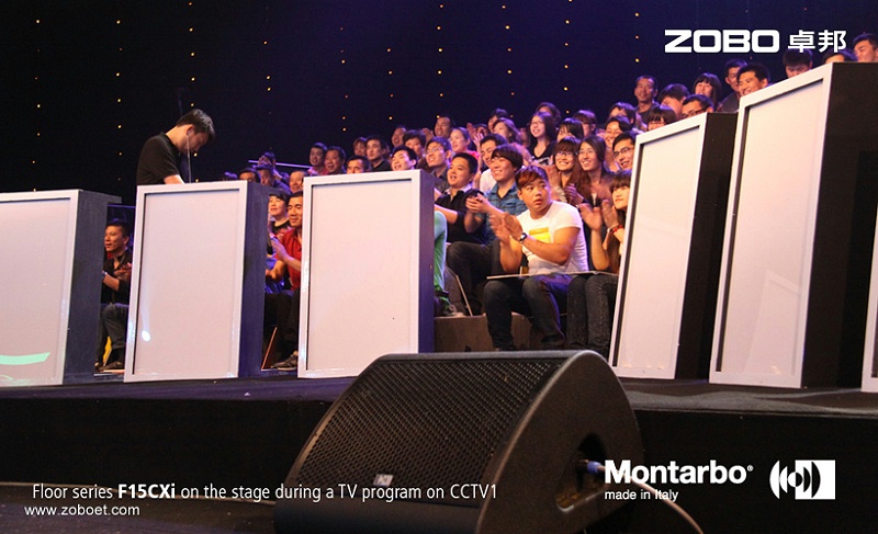 电视台演播室现场还是使用的号演播厅的常规机械舞台与更众席因此观众席两侧各吊5只全频线阵列扬声器,各摆放1只频扬声器,观众席前区摆放了2只全额扬声器作为补声扬声器,舞台区摆放了6只返送扬声器。