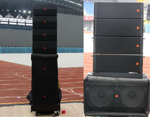 西看台位于主席看台,由于观众席太宽,前方又不可能摆放大型的扬声器阵列组,因此,在主看台区域分别摆放四组Bever BL 10四组4+1线阵列扬声器作为看台区扩声扬声器,放置在观众席左右两侧,拉宽整个声场,提高声像宽度。